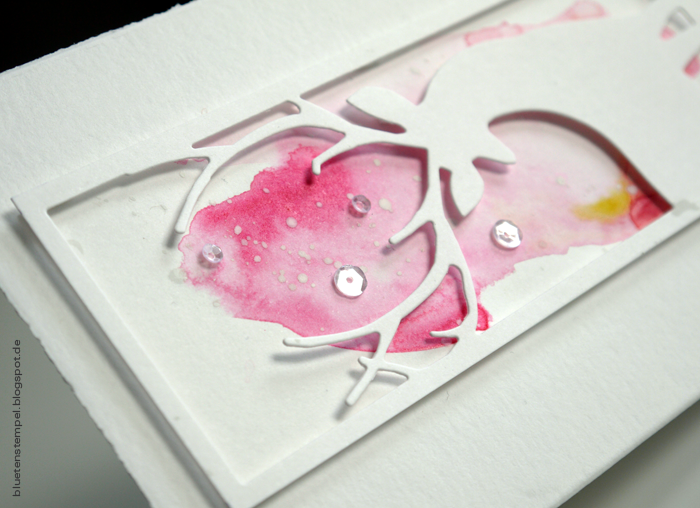 Das Milchige verwandelt sich in transparent und die Dots nehmen die Stempelfarbe an.